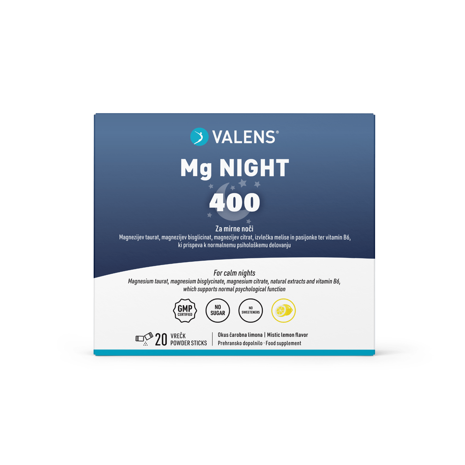 V današnjem hitrem tempu in obveznostih je še posebej pomembno, da si vzamemo trenutek zase. Valens Mg Night je ustvarjen prav za te trenutke – nežno pomaga odklopiti misli, sprostiti telo in zaključiti dan. Naravna aroma limone ustvari odličen, čaroben okus in skupaj z vrhunskimi sestavinami ustvarja izkušnjo, ki vas nežno spremlja v večerni ritual in vam omogoča, da se osredotočite na umiritev in dobro počutje pred počitkom.